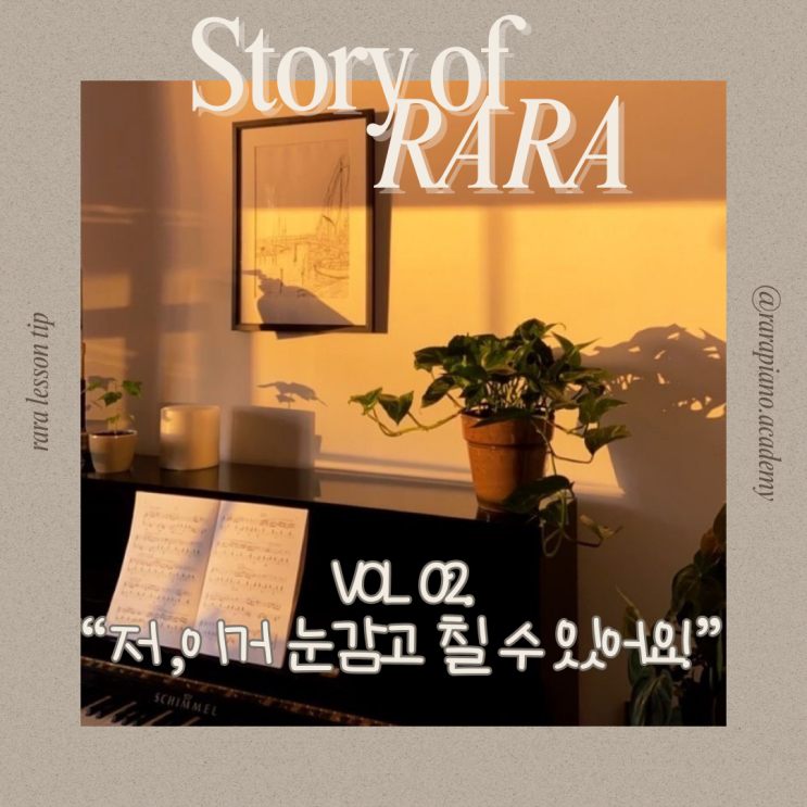 RARA MUSIC ACADEMY STORY VOL 02 : "저 이거 눈 감고 쳐요!" 연습실에서 숨어 지내던 안이, 변화의 시작. ✨아주 작지만 소중한 변화 오늘은 저희 해링턴 라라피아노 학원에서 일어난 아주 작지만 소중한 변화를 공유해보려 합니다. 아이들과 함께 시간을 보내면서 가장 보람찬 순간은 아이들의 연주 실력이 늘 때보다, 아이의 작은 변화들과 아이의 '마음' 의 움직임을 발견할 때 입니다. "세번이요?... 너무많은데..." 영상 속 주인공인 안이는 사실 피아노 앞에 앉는 걸 참 어려워하던 아이였어요. "우리 딱 세번만 쳐보자~"라는 저의 말도 버겁게 느껴졌는지 연습하는 방에 들어가 한참을 나오....... <img src="https://blogthumb.pstatic.net/MjAyNjAyMTJfMTIx/MDAxNzcwODkwNzI1Njk2.NF8jcCzXniNMDTDYtYNYqId1vfit8ZUUeKs3guQ9Ppcg.pRk_shNMhV9tgZCV1Sg2P6KoFa8lh5OyeB-0RKCECNgg.PNG/%B4%BA%C6%AE%B7%B2_%B8%F0%B4%F8%C7%D1_%BA%ED%B7%CE%B1%D7_%C6%F7%BD%BA%C6%AE_%BD%E6%B3%D7%C0%CF__%C0%CE%BD%BA%C5%B8%B1%D7%B7%A5_%C6%F7%BD%BA%C6%AE-2.png?type=s3" />