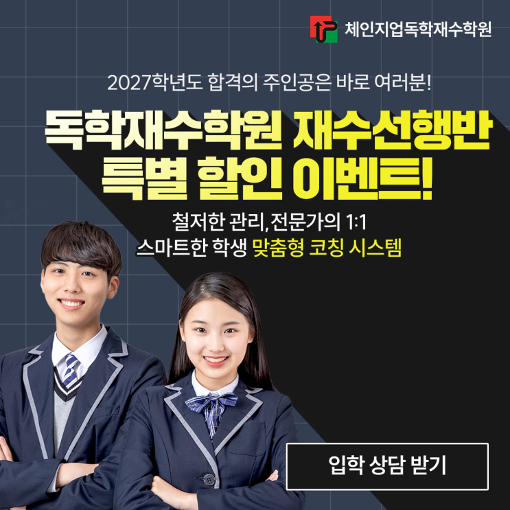 체인지업독학재수학원 수능성적표를 받고 나면 학생과 학부모님의 마음은 타들어 갑니다 불수능으로 심란 하지만 정시를 지원하고 합격의 영광이 나에게도 오기를 기대 하며 ~~ 추합까지 기다리기엔 내성적으로 무리일듯 하고 재수를 결심 하자니 어디서 무엇부터 준비해야 하냐 생각하면 머리가 복잡해 집니다. 1년동안 잘 준비하여 지난 1년의 실패를 반복하지 않으려면 부단한 노력과 의지가 중요 합니다 재수를 결심 하셨다면 어떤 학원을 선택하느냐 ? 기숙학원 재종반.독학재수,독서실,스터디카페 중에 선공부할 곳을 정해야 하지요 의지가 아주 약한분들은 기숙학원이 정답인것도 같고 비용이 문제 350만원선 나름 자기관리가 어느정도 되....... <img src="https://blogthumb.pstatic.net/MjAyNjAyMTJfMTYy/MDAxNzcwODU0ODg3Mjg2.YopfCV6u3DHR82hQi51NaigHOZIIr7BqazviUrhaq6wg.Mm19zCGDwvo4-8GAhgENMVPVVfa7ucQbEC1A3uLjCccg.PNG/KakaoTalk_20260211_145233672.png?type=s3" />