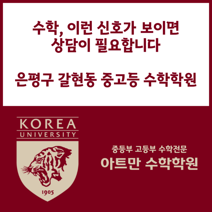 안녕하세요. 은평구 갈현동 중·고등 수학학원, 아트만수학학원입니다. 신학기가 시작되면서 학원 상담 문의가 빠르게 늘고 있습니다. 상담을 진행하다 보면 부모님들이 많이 하시는 말이 있습니다. “아이가 수학을 아예 못하는 건 아닌데...” “열심히 하는 것 같은데 성적이 안 올라요.” “지금 학원을 옮겨야 하는지 고민입니다.” 이런 고민은 대부분 성적이 크게 떨어진 뒤 시작됩니다. 하지만 실제로 문제는 그보다 훨씬 전에 나타납니다. 그래서 오늘은 신학기 기준으로 수학 상담이 필요한 학생들에게 나타나는 대표적인 신호를 이야기해 보려 합니다. ■ 설명을 들으면 이해하지만 혼자 풀면 막힌다 학생들이 많이 하는 말입니다. “....... <img src="https://blogthumb.pstatic.net/MjAyNjAzMDRfMTQ5/MDAxNzcyNjExNTY5MzUz.P5jt6a3fTAJ14d8fbYjYKelmVDNPwz0U_hx4ZtCvzS8g.yFedbwZkTHMRmFLWN1KGmigfVgZFx8S8gYHFdQCEzc8g.PNG/%C1%A6%B8%F1%C0%BB_%C0%D4%B7%C2%C7%D8%C1%D6%BC%BC%BF%E4._%281%29.png?type=s3" />