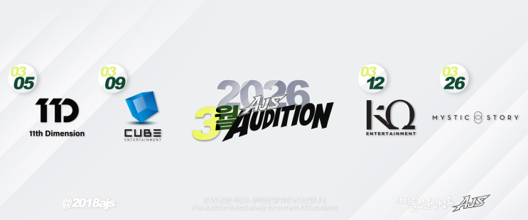 AJS 아이돌전문양성소 2026년 3월 내방오디션 11D / CUBE / KQ / 미스틱스토리