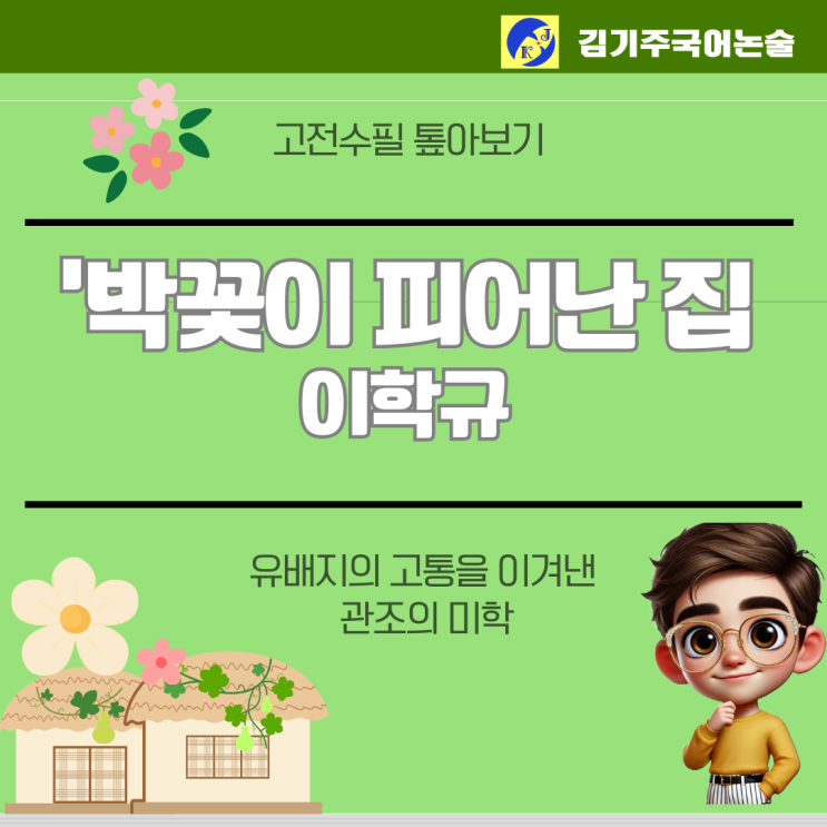 반갑습니다! 수험생 여러분의 든든한 국어 파트너, 김기주 국어 주클래스입니다. 오늘은 2027학년도 수능특강에 수록된 이학규의 고전 수필, <박꽃이 피어난 집>을 완벽하게 분석해 보겠습니다. 유배지라는 고통스러운 환경을 '마음의 눈'을 바꾸어 극복해가는 과정을 담은 아주 매력적인 작품입니다. 감상의 길잡이 <박꽃이 피어난 집>은 작가 이학규가 유배지의 좁고 열악한 집에서 더위와 질병으로 고통받던 중, 한 과객이 들려준 '머슴들'의 이야기를 통해 얻은 깨달음을 기록한 수필입니다. 작가는 자신이 처한 불행의 원인이 단순히 환경에 있는 것이 아니라, 그 환경을 대하는 자신의 '마음'에....... <img src="https://blogthumb.pstatic.net/MjAyNjA0MjZfODgg/MDAxNzc3MTk5MTc2MDc3.o2hPkJx8ikSJIMiogxaOiYN1igVOiIn3AENFsRVHN3Mg.QUTUCIHFQs7MifODMbgZA8fPsUmQb0VyjPNgna5hV7Qg.PNG/%C6%C4%B6%F5%BB%F6%B0%FA_%C8%B8%BB%F6_%BD%C9%C7%C3%C7%CF%B0%ED_%B1%F2%B2%FB%C7%D1_%BA%F1%C1%EE%B4%CF%BD%BA_%C4%AB%B5%E5%B4%BA%BD%BA_%C0%DB%BC%BA_%BF%E4%B7%C9_%BE%C8%B3%BB_%B5%F0%C0%DA%C0%CE_%C5%DB%C7%C3%B8%B4_%C0%CE%BD%BA%C5%B8%B1%D7%B7%A5_%C6%F7%BD%BA%C6%AE_%2816%29.png?type=s3" />