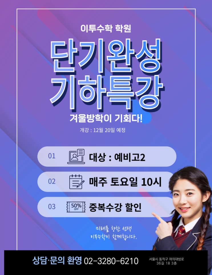기하 강좌 찾기 힘들다구요?? 이투수학학원에서 원장직강 기하 강의를 오픈합니다. 기하를 기하답게 배우며 상위권 도전을 위한 기하 개념 완성반이 겨울방학중에 진행됩니다. 4인정원으로 운영됩니다. ~~ 기하 선택한 학생들 모두 화이팅~!!!! <img src="https://blogthumb.pstatic.net/MjAyNTEyMThfMjQ3/MDAxNzY2MDUyOTA1NzA4.TuCl9jIXJbGpdrf7hWV_WO5B32W7qW6hfJIi-spFNjkg.j90-imTx9QVfFQfI95ejaVwAZuqU5ERvjsuNruueJiwg.PNG/%B1%E2%C7%CF%C6%AF%B0%AD1-001.png?type=s3" />