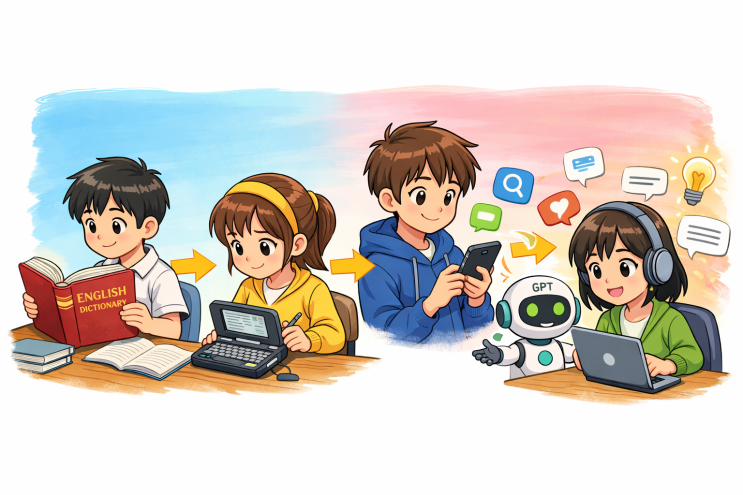 AI의 활용성이 높아지면서 교육 현장에도 적지 않은 변화가 일어나고 있습니다. 과제를 정리해 주고, 글을 요약해 주고, 심지어 수행평가 초안까지 만들어주는 시대가 되었습니다. 하지만 돌이켜보면 이런 우려와 걱정이 처음은 아닙니다. 전자사전이 처음 등장했을 때 단어를 찾는 시간이 줄어들면서 '예전만큼 공부하지 않는다' 라는 부정적인 인식이 있었죠. 스마트폰이 보급되면서 너무 쉽게 정보를 찾을 수 있다 보니 기억해야 할 필요성의 부재와 학습에 악영향을 줄 수도 있다는 걱정이 있었습니다. 하지만 시대적인 흐름은 더 이상 막을 수 없는 변화입니다! 이런 모든 변화에 적응하며 하나의 새로운 문화를 만들어왔습니다. ....... <img src="https://blogthumb.pstatic.net/MjAyNjAyMTdfMjkw/MDAxNzcxMzI0Mjc5ODA5.9yZDX3yLQ2cISt8bQfFXQ-os4qf9hgphSuejH5yjK8Mg.KDbyVJMmKYCYqHJuVj3fxWEBeACjLOIBebw_xX4O1zEg.PNG/%BB%E7%C0%FC%BF%A1%BC%AD_%BF%A1%C0%CC%BE%C6%C0%CC.png?type=s3" />