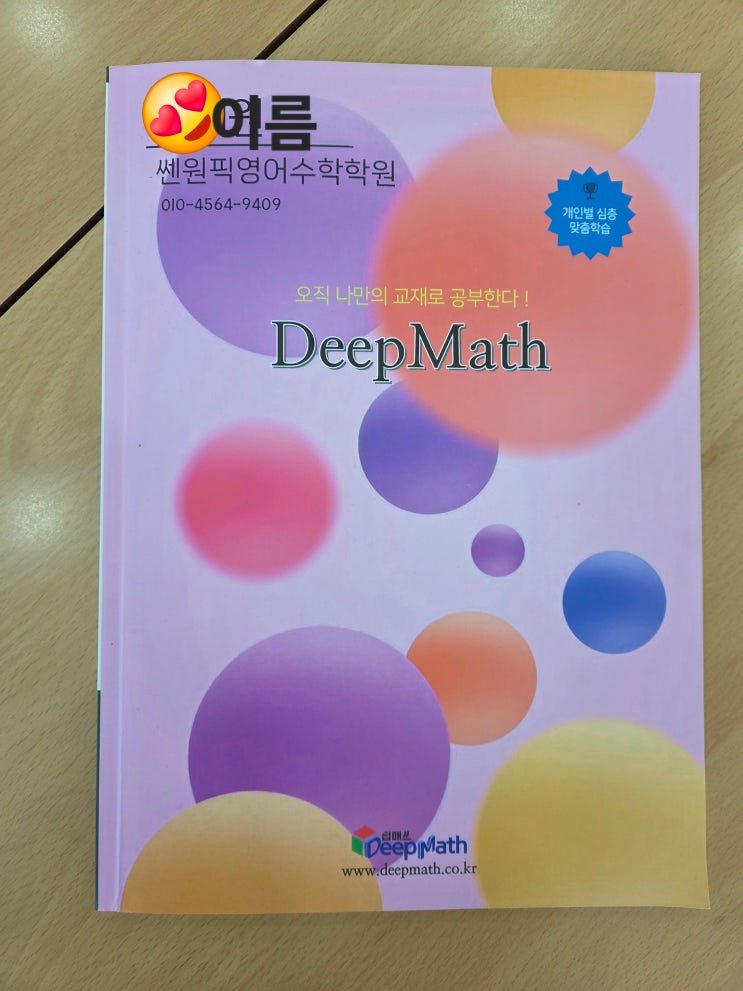 수학의 본질에 충실하라. 쓰기, 손으로 풀어보기, 개념정리하기 모든 과목에 교과수학이 근본이다. 사고력? 교과수학부터 제대로 다져라. 시중 출판사나 프랜들의 교재는 화려함과 디자인은 좋지만, 정해진 진도에 아이들을 맞추어야하는 것이 진짜 아이를 위한 것인가?하는 고민이 많았다. 딥매스는 아이의 수준에 맞추어 학년, 단원, 난이도, 분량을 마음대로 구성할 수있는게 가장 큰 메리트이다. 자유로운 반복학습도 가능하다. 생각노트 활용 또한 요즘 서술형 시대에 꼭 필요한 부분이다. 생각노트 호라용에 습관이 잡힌 아이들은 타 과목이나 내신에 우수한 실력을 발휘할 수 있다. 개념설명도 개별적으로한다. 학년별로 한번에 설명하면....... <img src="https://blogthumb.pstatic.net/MjAyNjAzMTJfMTcy/MDAxNzczMjk2NTI5Njg5.xiiVHCCk_kprayicxOPo_pcn-La3hx6F21aqxZPnuNcg.BF4PDHZaN1JXste-H4FnCdQvw2623oPxxzWzJtoiuPEg.JPEG/KakaoTalk_20260312_151157061.jpg?type=s3" />