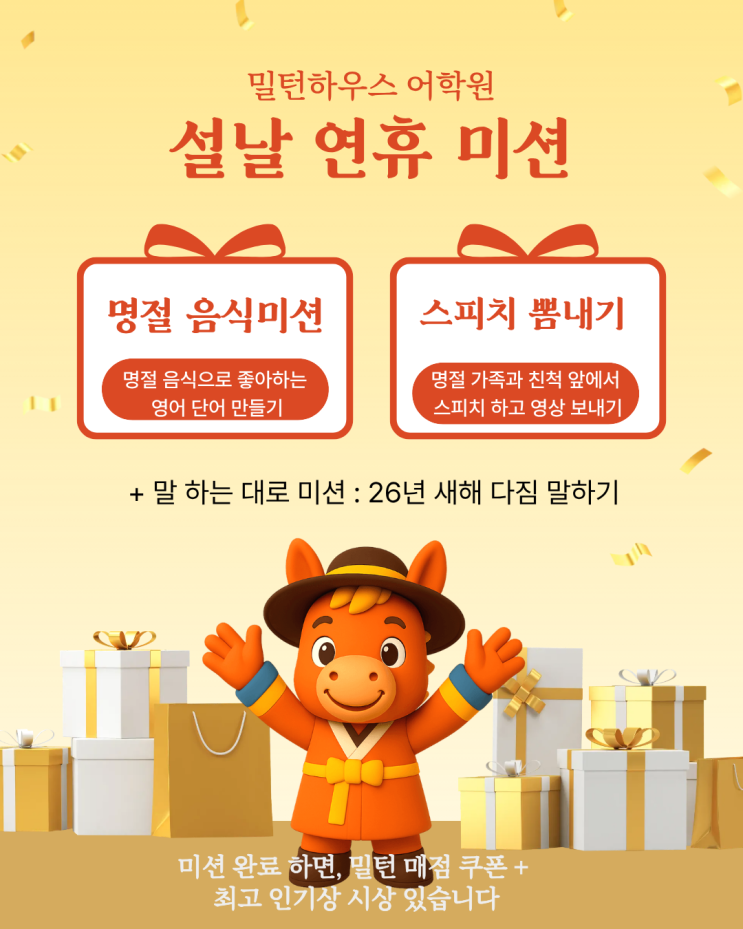 김해 장유 밀턴어학원 설날 연휴 미션 사진 공개! 율하 영어학원