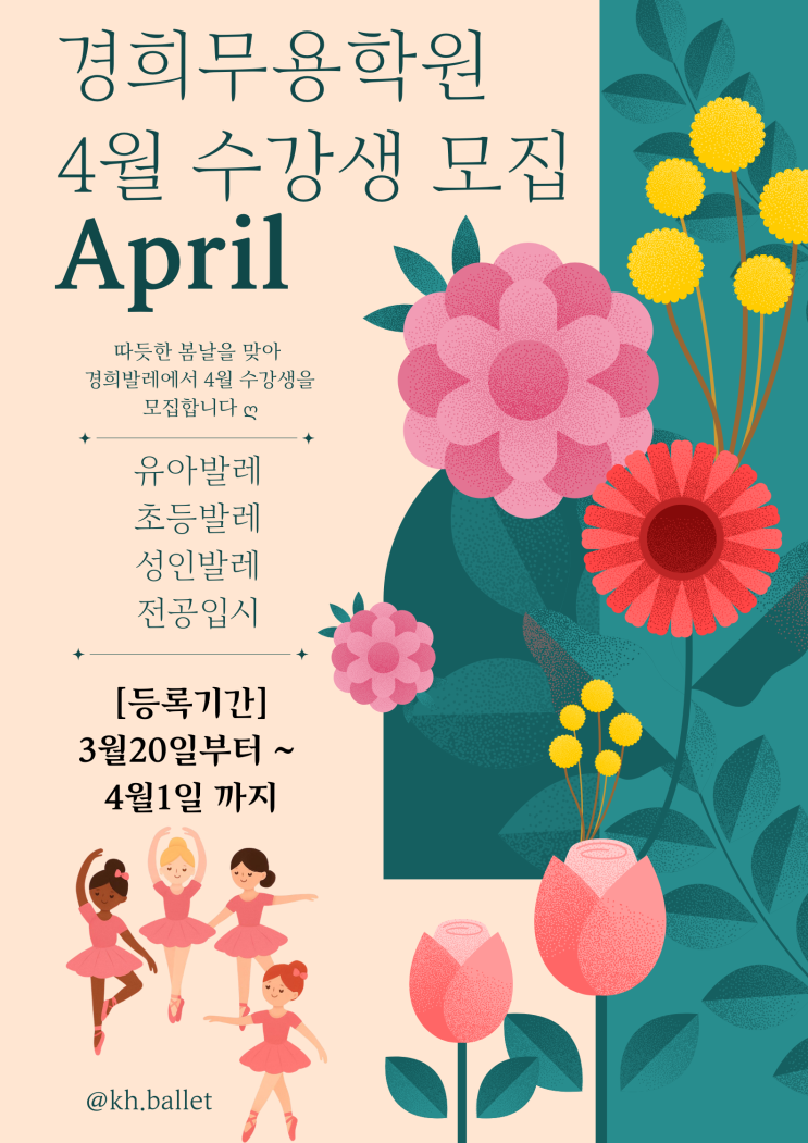 안녕하세요~ 노원발레의 중심!! 경희 로맨틱발레 무용학원입니다. 어제 비가오고나서 뿌옇게 하늘을 채우던 미세먼지들이 물러가고 오랜만에 화창한 봄 하늘을 볼수있었습니다 ^-^ 아침,저녁으로는 아직까지 일교차가 큰 만큼 건강관리에 유의하시길 바라며 날씨가 풀린만큼 음식관리도 전보다 신경써서 섭취를 하셔야 할 것 같습니다 ㅎㅎ 봄 하면 역시 !! 발레와 가장 잘 어울리는 계절인데 따듯해진 날씨와 더불어 경희발레와 함께 발레를 시작해 보는건 어떠실런지요 >.< 유아,초등 취미발레부터 예중,예고 대학입시를 준비하는 전공예비반과 전공입시반 발레를 처음 접하는 왕초보부터 중급이상 토슈즈 수업등 다양한 레벨별 수업을 진....... <img src="https://blogthumb.pstatic.net/MjAyNjAzMTlfMjM3/MDAxNzczOTI4MTIzMTAz.-XhA5thhkDleTPN7KztpfruvbCkZGDKaIafdRIkeKEsg._hwyrDpsVAEon-qyvV1ingH2NCaVjnTTaURfx7YrR2Ag.PNG/%B0%E6%C8%F14%BF%F9%BC%F6%B0%AD%BB%FD%B8%F0%C1%FD.png?type=s3" />