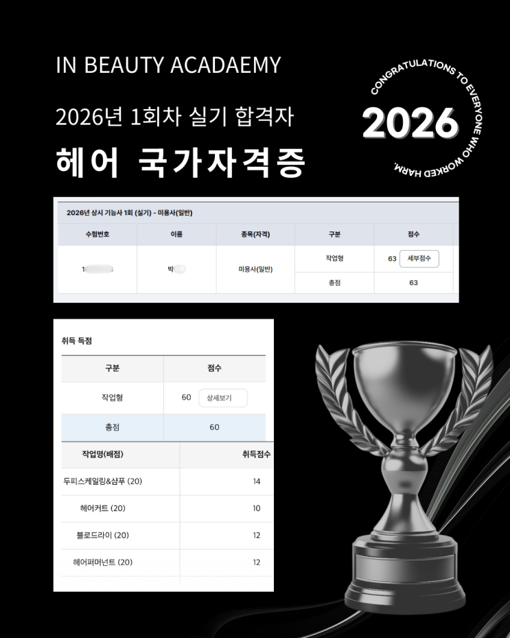 [ 제주미용학원 ] 미용 국가자격증 26년도 1회차 실기 합격자 발표!