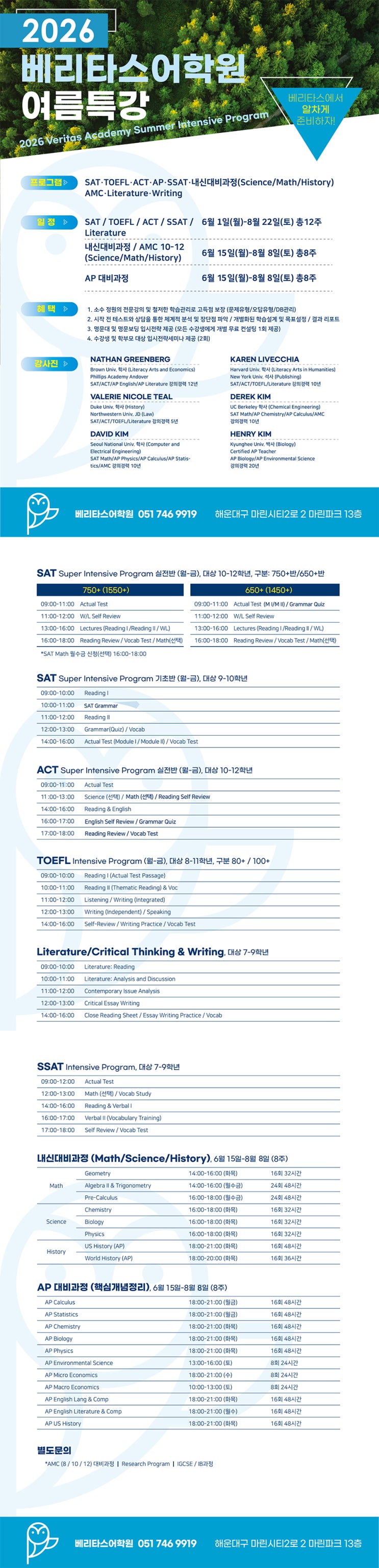 [2026 여름방학 SAT 특강/베리타스어학원] 부산SAT 학원