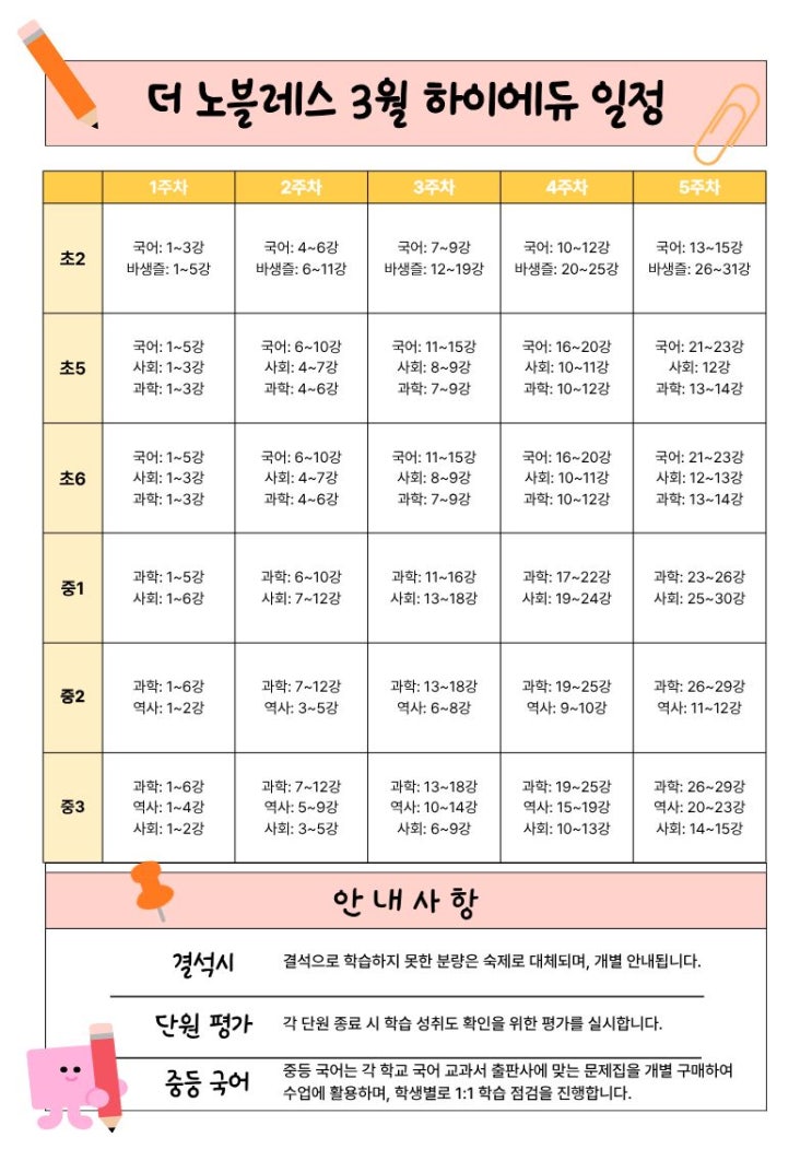 더 노블레스 학원 3월 하이에듀 일정