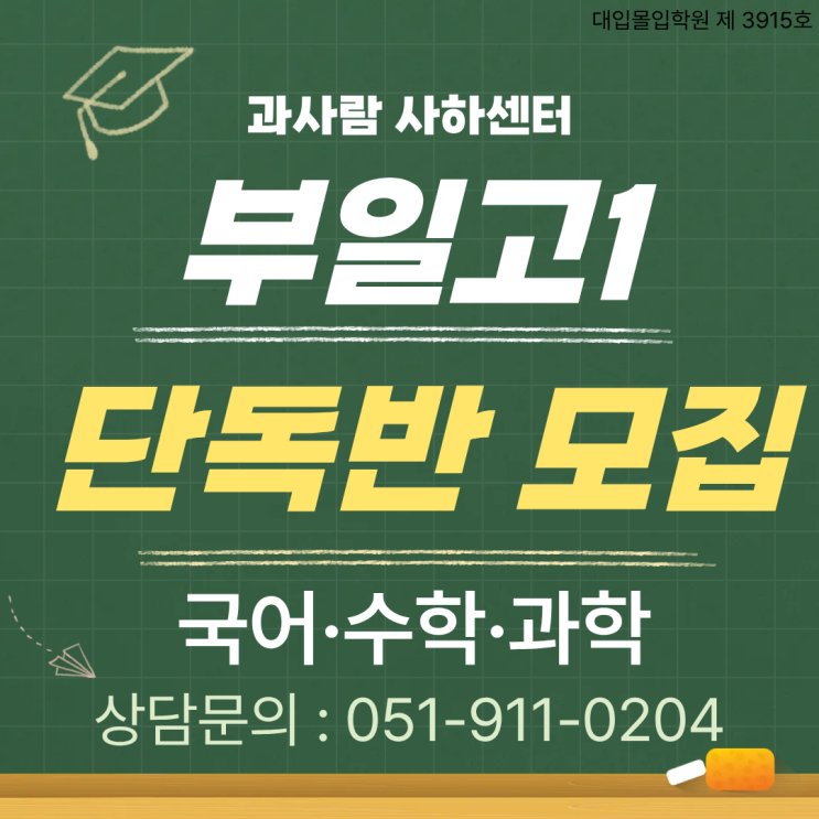 과사람 사하센터 고등관에서 부일고 1학년 단독반 모집중입니다