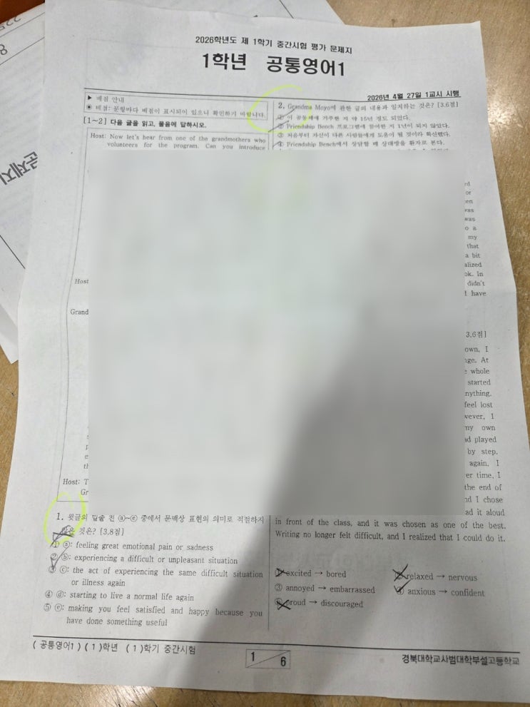 안녕하세요, 대구 TALK채움 해법영어입니다. 중·고등부 중간고사가 마무리되는 시기, 우리 아이들의 기분 좋은 성적표가 속속 도착하고 있습니다. 특히 이번 시험 결과는 원장인 저에게 더욱 각별하고 뭉클한 의미가 있어 기록으로 남겨보려 합니다. 이번 중간고사에서 눈부신 성과를 낸 두 제자의 소식입니다. 사대부고 1학년 A 학생: 영어 내신에서 객관식 전체 만점! 정동고 1학년 B 학생: 주관식 포함 전체 95점! 지문의 논리 구조를 완벽히 파악해야 풀 수 있는 고난도 문항들 사이에서도 우리 아이들은 흔들림 없이 정답을 찾아냈습니다. "이 아이들은 초등 5, 6학년 때부터 저와 함께였습니다." 사실 이 두 친구는 시험 기....... <img src="https://blogthumb.pstatic.net/MjAyNjA0MjhfOTkg/MDAxNzc3MzU4NDA2MDg1.L1prXM2T4GBeqUMqt41H4UermvRD_FG5jQZLiort0z0g.sf4-5c7diFOnOqKrvGWVnonpwsjaSs-JnBEAzs3C_VIg.JPEG/KakaoTalk_20260428_153330585.jpg?type=s3" />