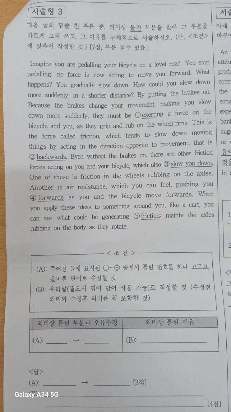 오늘이 4월 14일이니 대건고 영어시험이 채 2주도 남지 않은 시점입니다. 지금까지 나온 자료는 교과서(비상홍) 1과 4과가 전부라 많은 학생들이 혼란스러울 거라 생각됩니다. 이 시점에서 난 무얼 준비해야 할까 고민하는 학생들이 많을 것으로 생각되기에 몇 가지 조언을 드립니다. 작년 개정 교과 이후로 대건고 영어시험은 기존의 출제 방식과는 달라진 점이 있는데요... 정답의 이유를 쓰게 하는 것입니다. 기존의 서술형이 문제가 문장을 암기해서 올바르게 배열하는 게 주였다면 작년을 기준으로 70% 이상의 서술형에서 답의 근거, 즉 이유를 설명하라는 문제가 출제되었습니다. 문법뿐만 아니라 어휘 2학기에서는 문장 넣기에서도 정답의....... <img src="https://blogthumb.pstatic.net/MjAyNjA0MTRfMjYw/MDAxNzc2MTY2Mzk4OTcz.jbPnX5c_ft6QMIa0MRGVhldr0anZ5VxleTubP5yfWs8g.Jd27p5b5CmIg9-CxmFtv06kT8lj4ZAVVUKzkwEH-kPUg.JPEG/KakaoTalk_20260414_202828535_01.jpg?type=s3" />