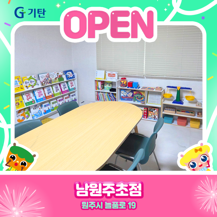 새로운 시작의 설렘이 가득한 시기, 강원도 원주시 단구동 학부모님들께 반가운 소식을 전해드립니다. 아이가 학교 수업을 잘 따라갈 수 있을지, 공부 실력을 잘 쌓을 수 있을지 고민하시던 부모님들의 불안감을 확신으로 바꿔줄 특별한 공간, 단구동 기탄공부방이 드디어 문을 열었습니다. 학습의 기반을 다져야 하는 유치 단계부터 학교 수업의 밀도가 높아지는 초등 저학년 시기에는 지식을 일방적으로 주입하기보다 아이 스스로 공부의 재미를 느끼게 하는 것이 무엇보다 중요합니다. 단구동 기탄공부방은 아이가 배움의 주인이 되어 스스로 해답의 실마리를 찾아가는 짜릿한 성취감을 맛볼 수 있도록 준비되었습니다. 공간이 주는 에너지는....... <img src="https://blogthumb.pstatic.net/MjAyNjAzMTNfMjAx/MDAxNzczMzc4MzkyODg0.DAthEm7EWbTvfy3JvZZtRvOcNe-pG0ZTQ4O4vTB0xVcg.XiXbFJT7NoZ0RFRD1-ijkfp95_RIqBAV7c46Jwp_ejAg.PNG/0306_%B3%B2%BF%F8%C1%D6%C3%CA%C1%A1_%284%29.png?type=s3" />