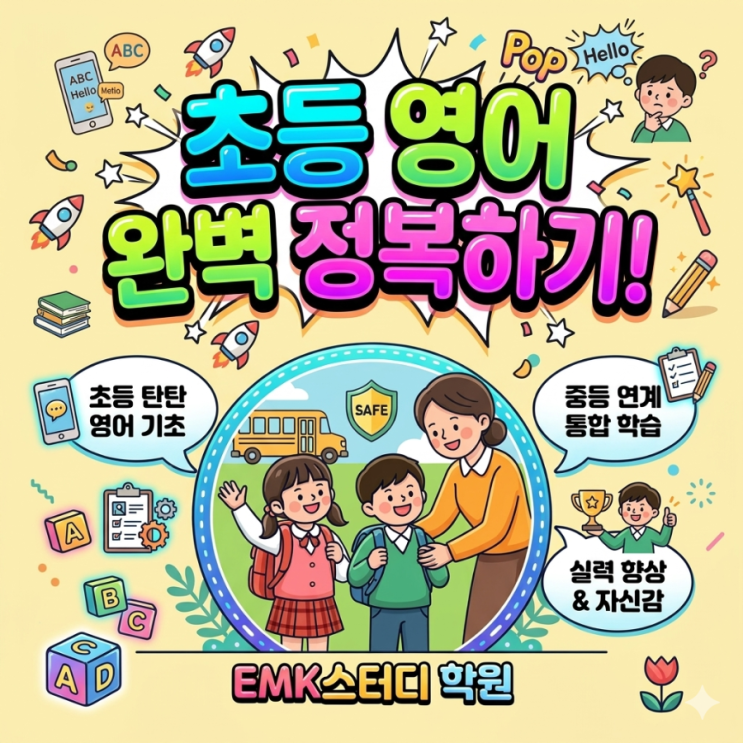 안녕하세요! 인천 서구 심곡동 영어 교육의 중심, EMK스터디학원입니다. 초등학교 자녀를 둔 심곡동 학부모님들, 요즘 우리 아이 영어 공부 때문에 고민 많으시죠? "학원은 다니는데 실력이 느는 건지 모르겠어요." "중학교 가기 전에 문법을 끝내야 한다는데 가능할까요?" 오늘은 서곶초,양지초 등 우리 지역 초등학생들을 위해 **'중등 내신까지 이어지는 초등 영어 학습법'**에 대해 짚어드리려고 합니다. 1. 무작정 암기 NO! '이해' 중심의 문법 기초 초등 영어에서 가장 큰 실수는 중학교 문법을 미리 시킨다며 무조건 공식처럼 외우게 하는 것입니다. EMK의 비결: 문장의 구조를 눈으로 익히....... <img src="https://blogthumb.pstatic.net/MjAyNjAzMTZfMTQ2/MDAxNzczNjI4ODkzNTIz.lsHBfZHHTnzcU_FO0rxv4pOHVqz_s5yMqECO27oG9RYg.3AyHr8ejnzu8BhEoq-TUucC40vK7Scj_-Iv-8ENIOWQg.PNG/900%A3%DF1773628871157.png?type=s3" />