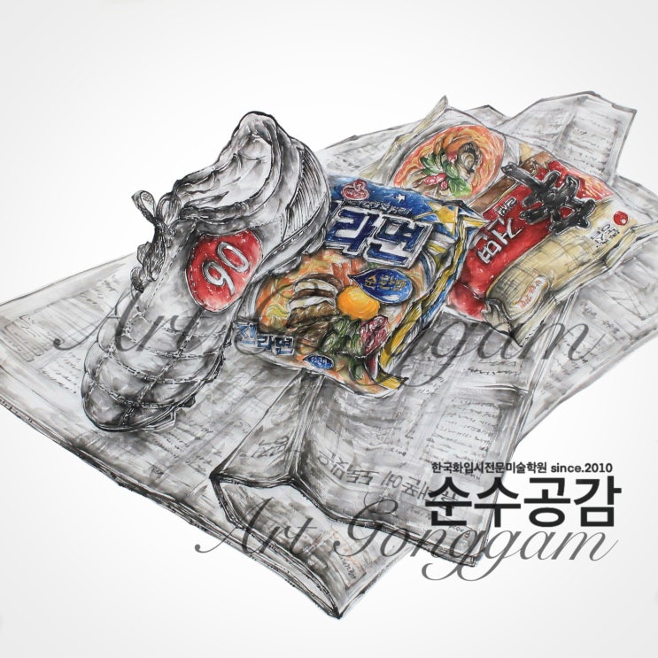 안녕하세요! 수원에서 한국화, 동양화 입시를 전문으로 지도하고 있는 입시전문 순수공감 미술학원입니다. 오늘은 학생들이 가장 궁금해하는 "입시에서 어느 정도 수준까지 그려야 하나요?"에 대한 답이 될 수 있는 시범작 작품을 소개해 드리려고 합니다. 이 그림은 우리 학생들이 평소 자주 접하는 '일상 속 소재'들을 '정물'로 구성하여 표현한 정물수묵담채 시범작입니다. ✨ 단순한 정물 묘사를 넘어서 ✔️ 소재 간의 관계 설정 ✔️ 시선 흐름 구성 ✔️ 먹과 채색의 조화 까지 모두 고려하여 표현된 그림입니다. 특히 한국화 입시에서 중요한 묘사력 + 구성력 + 표현력을 동시에 보여줄 수 있는....... <img src="https://blogthumb.pstatic.net/MjAyNjAzMTdfMjU0/MDAxNzczNzI2ODE0MTIx.lFfiCFRFOudJHGDsbJ0KoHQ9gxESMuF3p-qYDvomWsIg.JWaaVKgflXlQCLA4P7-oAomz31kow_UpR-hB46Xjdn0g.JPEG/IMG_2061.jpeg?type=s3" />