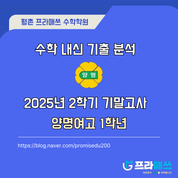 평촌 양명여고 전문, 프라매쓰 수학학원 양명여고 1학년 2025년 2학기 기말고사 수학 내신 분석(1학기 2학기 모두 1등급 달성!!)