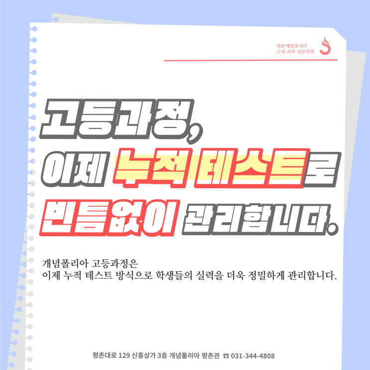 [평촌수학학원] ♥♥개념폴리아평촌관♥♥ 고등과정, 이제 누적테스트로 빈틈없이 관리합니다.