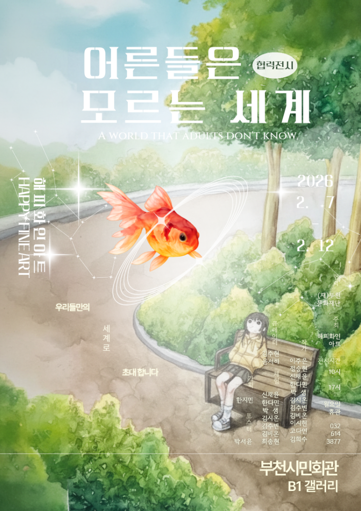 안녕하세요, HAPPYFINEART입니다! 오늘은 부천의 어린이 작가단이 "부천문화재단" 과 손을 잡고 준비한 특별한 협력 전시 현장을 소개해 드리려고 합니다. 부천문화재단 홈페이지 바로가기 아이들의 순수한 시선과 열정이 가득했던 그 현장, 지금 함께 들어가 보실까요? 입구에 들어서면 안내데스크에서 우리 주은이와 작가님이 환한 미소로 관람객들을 반겨줍니다. 아직 본격적인 오픈 전이라 전시장 안은 폭풍 전야처럼 고요하면서도 기분 좋은 긴장감이 감도는데요. 아이들이 직접 정성껏 배치한 작품들이 관객들을 만날 준비를 마친 모습입니다. 기대 반, 설렘 반의 마음이 느껴지는 공간이죠. ✨ 드디어 시작된 오픈식! 드디....... <img src="https://blogthumb.pstatic.net/MjAyNjAzMTNfNiAg/MDAxNzczMzg3MDAwNTAz.h1jW86T5g04bqEJcf9vZ2syfxt2Zl5614s9ZJLTGQj8g.3dnwl1EFK-8AwrndEP-nn5SPJ8Hl6aOk9zeg2ydCOzgg.PNG/IMG_7392.PNG?type=s3" />