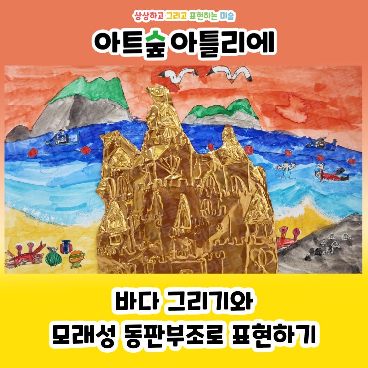 안녕하세요. 북위례 메디프라자 4층에 위치한 '아트숲 아틀리에'입니다 :) 이번 글은 여름 미술 "바다 그리기와 동판 부조로 모래성 표현하기" 올려드려요~ 북 위례 미술, 위례숲초, 송하유치원, 위례솔초 아트숲 아틀리에 미술 평일 : 2:00-7:30 / 토요일 2:00-6:30 *메디프라자 건물 주차 가능 문의 : 010-4208-5312 ▼자세한 위치는 밑에 링크 달아드립니다▼ 북위례학원, 아트숲아틀리에, 초등미술, 아동미술 동판 부조 이번에 올려드릴 아트숲 친구들 작품은 동판 부조를 이용한 모래성을 표현하는 작품으로 '동판 부조'에 대해 간단하게 설명도 함께 올려드립니다 동판 부조란? 동판(구리 판)에 그....... <img src="https://blogthumb.pstatic.net/MjAyNjAzMjBfMjU3/MDAxNzczOTg3MTA5MzY1.q7IK97zSr2G-9lI6Idrn72UZaflvt7tAb79eJTjG2-wg.I2BnXqkpluCtYIC63_QwnMXtA5AEE--ZdRoYePs1sdgg.JPEG/%B9%D9%B4%D9_%B1%D7%B8%AE%B1%E2%BF%CD_%B8%F0%B7%A1%BC%BA_%B5%BF%C6%C7%BA%CE%C1%B6%B7%CE_%C7%A5%C7%F6%C7%CF%B1%E2_%B8%DE%C0%CE-1.jpg?type=s3" />