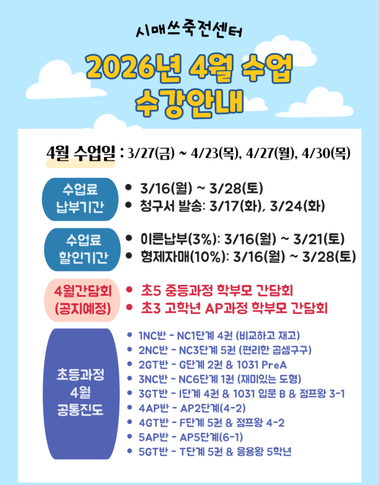 [죽전보정 수학] 시매쓰죽전 4월 수강안내