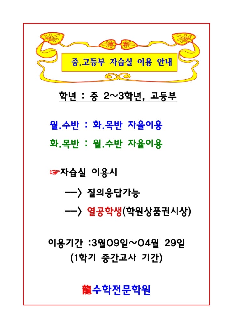 ●중.고등부 자습실 안내●