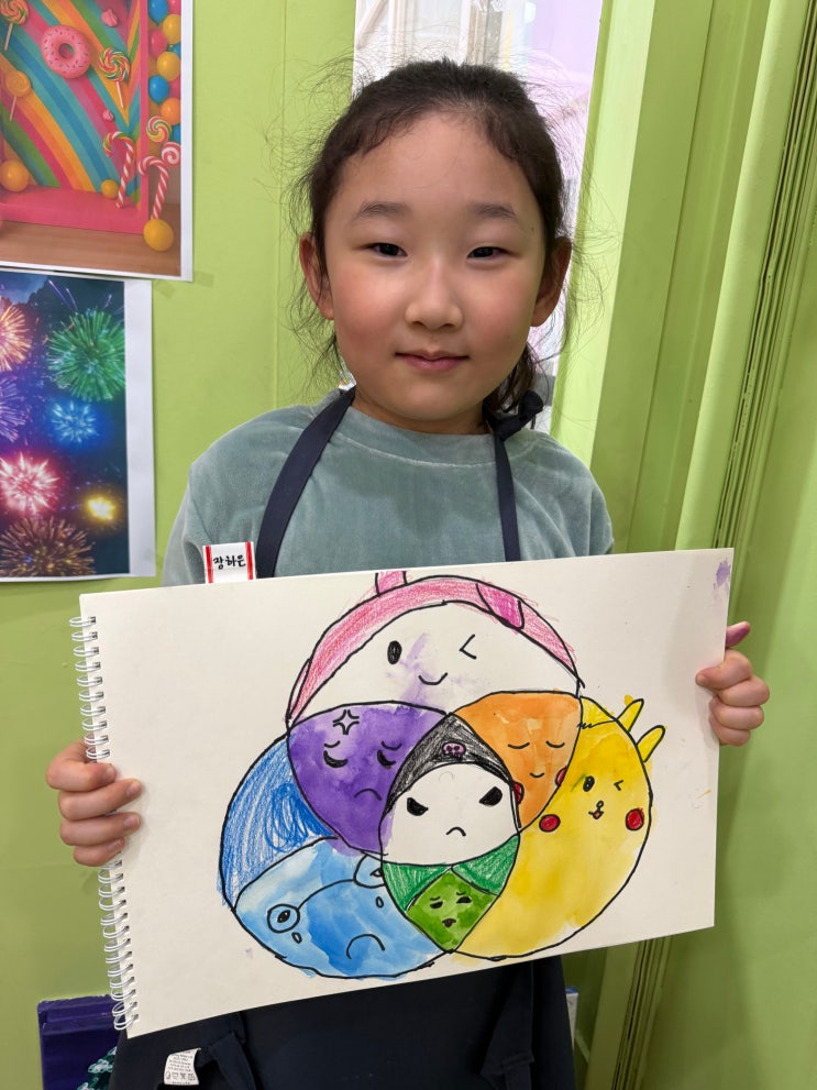 아이들은 미술의 가장 기본이 되는 '삼원색'(빨강, 노랑, 파랑)을 살펴보며 색이 어떻게 만들어지는지 직접 만들어서 채색하는 경험을 해보았어요. 팔레트에 있는 색을 그대로 채색하는 것이 아니라 먼저 세 가지 기본 색 중 두 가지 색을 섞어가며 변하는 과정, 색마다 물감의 비율에 따라 미묘하게 달라지는 색감 자체를 즐겁게 탐색했어요. 삼원색 물감을 모두 섞으면 검정에 가까운 색이 만들어지는 데, 이것이 감산혼합이라는 점을 설명해주었어요. 이후 아이들은 아이들이 만든 색은 어떤 감정이 떠오르는지 떠오르는 아이디어를 색상환 위에 표현했어요. 밝은 색에는 웃는 얼굴을, 조금 어두운 색에는 우울한 얼굴을 그리며 색....... <img src="https://blogthumb.pstatic.net/MjAyNjAzMjRfMjEx/MDAxNzc0MzQ0NzgxODM2.4OSZSE9R409nSeNkHy-YGqAJAZX5GHD4QvyCYEJmEP0g.VGXFcRXpT81ywYDAEE0LB3nB1QWUFPHzkM9Si54d5FUg.JPEG/KakaoTalk_20260324_181941583_09.jpg?type=s3" />