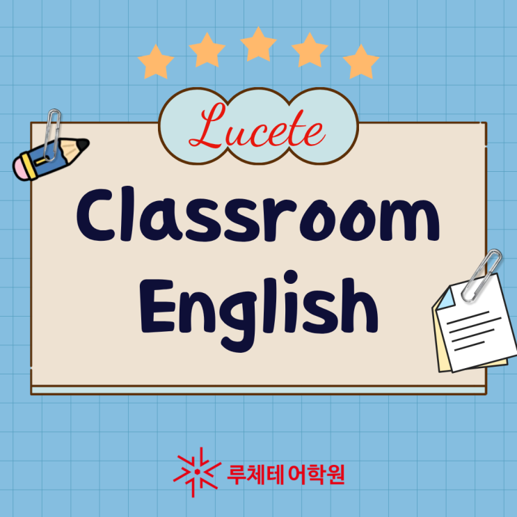 안녕하세요, 루체테어학원 영등포캠퍼스입니다. ^_^ 오늘은 교실에서 사용하는 영어 표현에 대해 알아보려 합니다. 먼저 대화를 한 번 살펴볼까요? Luke: Oh, no! (어떡하지!) Elena: What's wrong, Luke? Is everything okay? (무슨 일이니, 루크? 괜찮아?) Luke: I forgot to bring my writing book. Can I have a printout of today's lesson? (쓰기 책을 가져오는 걸 깜박했어요. 오늘 수업 부분 복사본을 주실 수 있나요?) Elena: Of course. Here you are. But make sure to double-check your bag next time! (물론이지, 여기 있단다. 하지만 다음번엔 가방을 꼭 다시 한번 확인하렴!) Luke: Okay, I will. Thank you, teacher........ <img src="https://blogthumb.pstatic.net/MjAyNjAzMTJfOTMg/MDAxNzczMjk1NzYyMDA4.gMj64QPCdd6viu7HkKa5n6E8bhSTQCuVJnU_rvYHWPIg.FcsdOW3mp6xwI2JPgvvCETPQshIdrwkZyLemmyc5Jxog.PNG/Classroom_English.png?type=s3" />