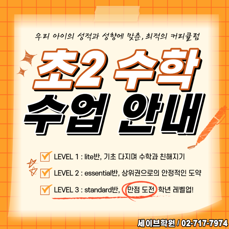 [세이브학원] 초2 수학 수업 안내 / Level별 클래스 소개