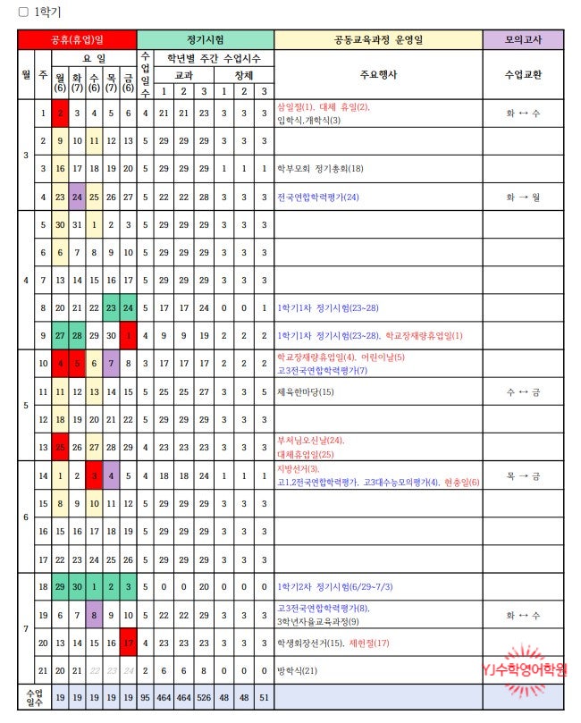 2026년도평택비전고등학교 학사일정!!
