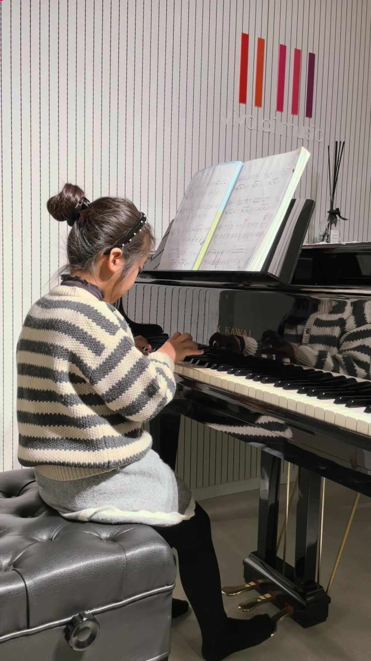 귀여운 머리띠를 하고 캐롤을 연주하는 피아노 인생 9개월차 아이에요 호기심이 많아 배우는 모든것이 즐겁다는 요 아이는 늘 설레는 마음으로 새로운 곡을 맞이하고 완성해가는 과정에서의 기쁨을 알만큼 음악을 사랑하는 아이랍니다❣️ 1년간 피아노와 친하게 지낸 아이는 곡 전체의 틀을 이해하고 멜로디를 들으며 페달을 자유자재로 사용할 수 있게 되었어요 요즘 새로 도전중인 아이돌 노래도 너무 좋아하면서 배우고 있답니다 이렇게 아이들에게 ‘피아노’라는 친구를 만들어주는 것, 그것이 이 일을 하는 이유이자 가장 큰 보람이 아닐까 싶어요✨ <img src="https://phinf.pstatic.net/image.nmv/blog_2026_03_16_1659/LfeyLufldt_03.jpg?type=f480x480" />