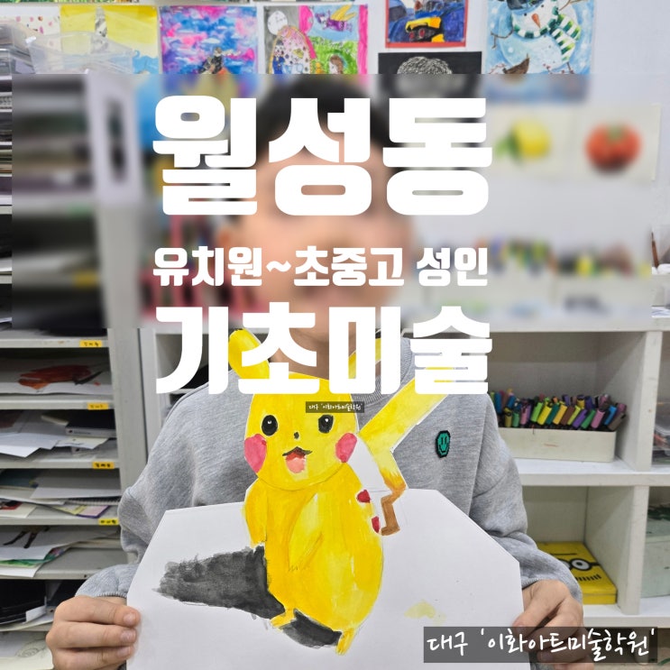 안녕하세요 대구 달서구 월성동 < 이화아트 미술학원 >입니다 ✨ 유치원~초중고 성인반까지! 기초소묘,수채화,색연필 수업과정 ✨ ✨유치원~초중고 성인반까지! 기초소묘,수채화,색연필 수업과정 ✨ 이화아트미술학원 아동/성인반 작품입니다!! ✨ 기초 미술 시작! ✨ 이화아트미술학원과 함께라면 누구든 그림 실력 쑥쑥! 저학년부터 성인까지 다양한 표현력 UP 수업! 우리 이화아트미술학원에서는 아이부터 어른까지 모두가 즐겁게 그림을 그리며 표현력을 키울 수 있는 알차고 재미있는 수업들을 진행하고 있어요. 저학년 친구들의 귀여운 첫 드로잉부터 중학생, 고등학생, 그리고 성인반까지, 각 연령대에 맞춘 기초 소묘, 수채화....... <img src="https://blogthumb.pstatic.net/MjAyNjAzMDhfMjg0/MDAxNzcyOTU4MjQ0MTEy.0aoD0PLoyCBaD9ae-jzWXSwE5i5dqc8yKQPO0R_t2bMg.R7qwy68uC3hcWFDFu5BORhcCsvIsNV4Sh2yKGcjbijYg.JPEG/KakaoTalk_20260308_165042953_11.jpg?type=s3" />