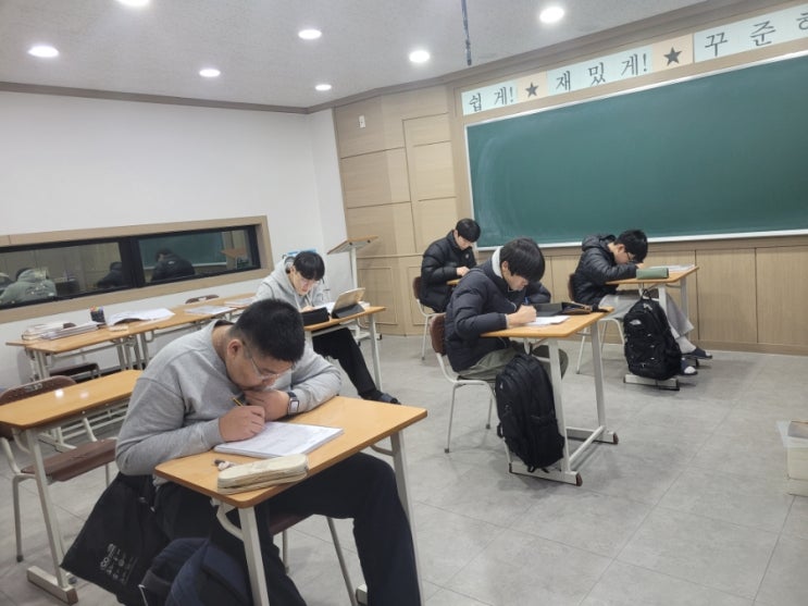 수학학원 바른은 예비고 학생들이 고등학교에 진학하여 어느 정도 내신 성적을 받을 수 있을 지 가늠해보고 그에 맞게 수준별 반편성을 하기 위해 매년 겨울방학 동안 두 차례 레벨 테스트를 시행하고 있습니다. 2026년 2월 21일, 2차 레벨테스트가 다음과 같이 시행되었습니다. 올해에도 많은 학생들이 응시해 주었습니다. 그동안 공부한 고등수학에 대한 성취도를 중간 점검해 보는 시간이 될 것입니다. 2026년 2월 21일(토) 11:36 ~ 12:26 시험 시작! 시험시간은 고등학교 내신시험시간과 동일한 50분! 문항은 서술형 없이 25문항! 1차시험보다 시험범위는 더 넓게, 난도는 더 어렵게 출제 되었습니다. 제 1 고사실 제 2 고사실 제 3 고사실 제....... <img src="https://blogthumb.pstatic.net/MjAyNjAyMjhfMiAg/MDAxNzcyMjczNzIyNTIz.Wix2z7dcJwuZOb8hrh330zA8cheVBNUQtlnzdu4KZMwg.xWBf3rFYPVVGvf1F-bHV6oq95qRm9sVOoOgjgWJf4zog.JPEG/DSC03943.JPG?type=s3" />