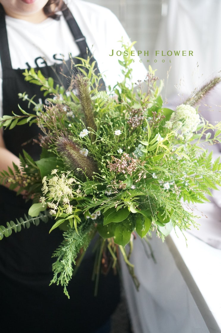 <국비지원과정_꽃다발꽃바구니> 조셉플라워스쿨, 국비지원플로리스트, 내일배움카드, 폴리지부케, 소재다발, 그리너리꽃다발
