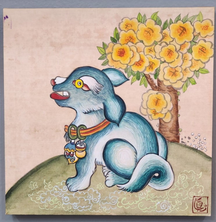 안녕하세요? 1월의 마지막주 화요일 민화 강아지 채색하는 날!!! 오늘의 예시작 한번 살펴볼까요? #강아지는 충성심.보호.복을 상징하구요^^ #노란꽃 밝음.행복.좋은기운을 상징합ㄴㄱ다. #목에 단 장식 귀하게 여겨지는 존재이며 #구름무늬 길상(좋은일)이 일어남 오늘도 민화!!! 잘그린 그림이 아니라 마음을 담아그린그림!!! 시작해볼까요? Tea와 #캘리그라피 오늘도 원장님들을 반겨주네요^^ 수업이시작되고~~ 지난수업에 이어 두번째 채색이라서 긴장감없이 바로 시작!!!! 오늘도 몰입하는 모습 #아티스트입니다 잘 되어가고 있나? 고민도 해보고^^ 작품들 비교도 해보고^^ 시간이흐르고 강아지의 털도 마음담아 표현해보고^^ 오....... <img src="https://blogthumb.pstatic.net/MjAyNjAxMjdfMTg5/MDAxNzY5NDg3ODEzMDcw.fc27noTpv45CIyEhz44VeaQNkDd7zPeD67N60uCzS2Ig._6DkC4eJY9ccmcZTVVAtDyckX9FkQ7T4c4fQzDHz2GYg.JPEG/900%A3%DF20260126%A3%DF154623.jpg?type=s3" />