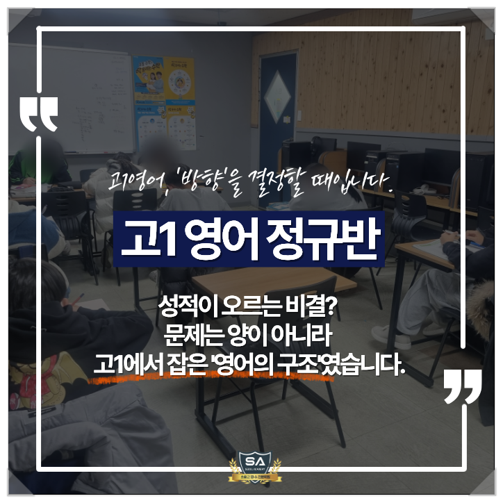 안녕하세요. 삼각동고등영어 서울학원입니다. 서울학원은 전교 1등 다수 배출, 서울대·연세대·고려대 등 상위권 대학 진학 성과를 통해 고등 학습의 ‘기준’을 결과로 증명해온 학원입니다. 이 성과의 공통점은 분명합니다. 고3에서 문제를 많이 풀어서 성적이 오른 것이 아니라, 고1에서 영어의 구조를 정확히 잡았다는 점입니다. 삼각동고등영어학원을 운영하며 지켜본 바, 고1 영어에서 기준 없이 버틴 학생들은 고2·고3으로 갈수록 문법은 외웠는데 해석이 안 되고, 지문은 읽었는데 핵심을 못 잡는 상황에 빠지기 쉽습니다. 그래서 서울학원 고1 영어 정규반은 문제를 많이 푸는 수업이 아니라, 고등 영어를 끝까지 끌고 갈 기준을 만드는....... <img src="https://blogthumb.pstatic.net/MjAyNjAyMjdfNTUg/MDAxNzcyMjAzNjU2NzIx.aXTN2W4j-T8ahJ__O64f3R7PlL0bUOtMZHBNk1APILMg.tH7-4XzIBJ87O5VXFjimHDYaurLDwYIpls441BEFp7Ug.PNG/1.png?type=s3" />