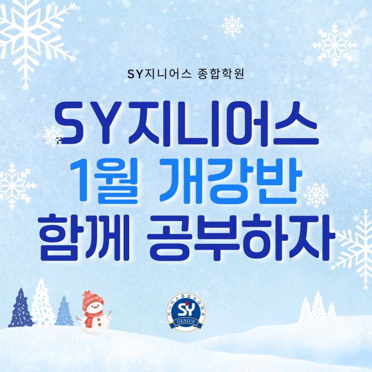 [의정부 고산동 종합학원] SY지니어스에서 1월 개강반에서 가족, 친구 함께 공부하자!