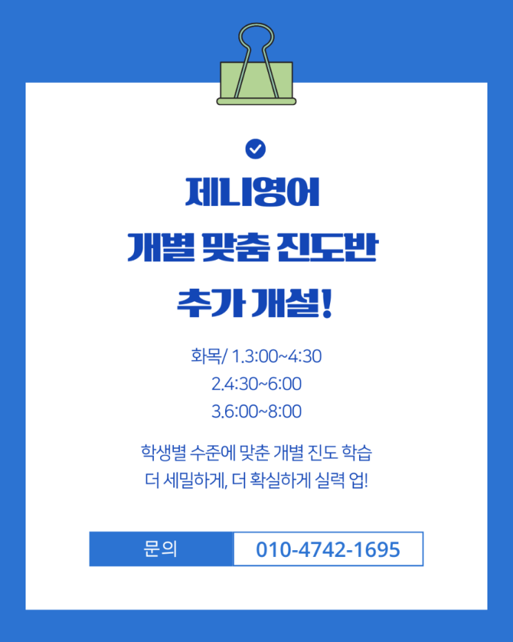 [박달동 영어학원]제니영어 개별맞춤 진도반 추가 개설 되었습니다.^^