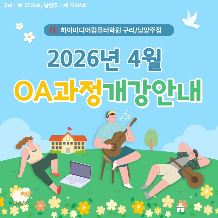 구리국비지원학원 ITQ(한글,엑셀,파워포인트)/컴퓨터활용능력 자격증/OA과정 4월 개강일정안내