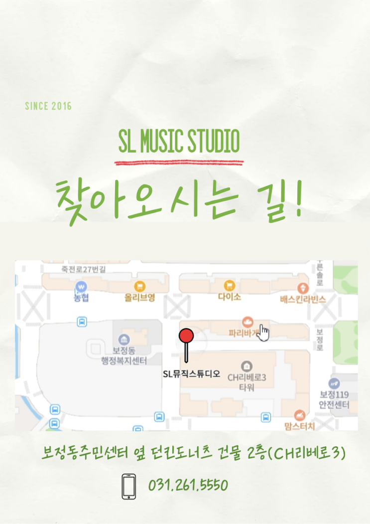 (보정동실용음악학원/죽전보컬레슨/보정동보컬레슨)SL뮤직스튜디오 찾아오시는 길!