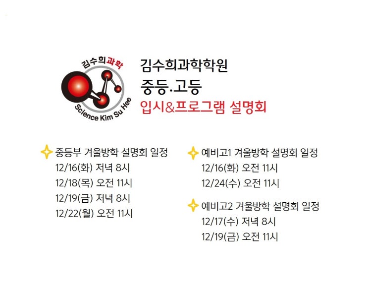겨울방학맞이 학부모 설명회 및 간담회 일정안내