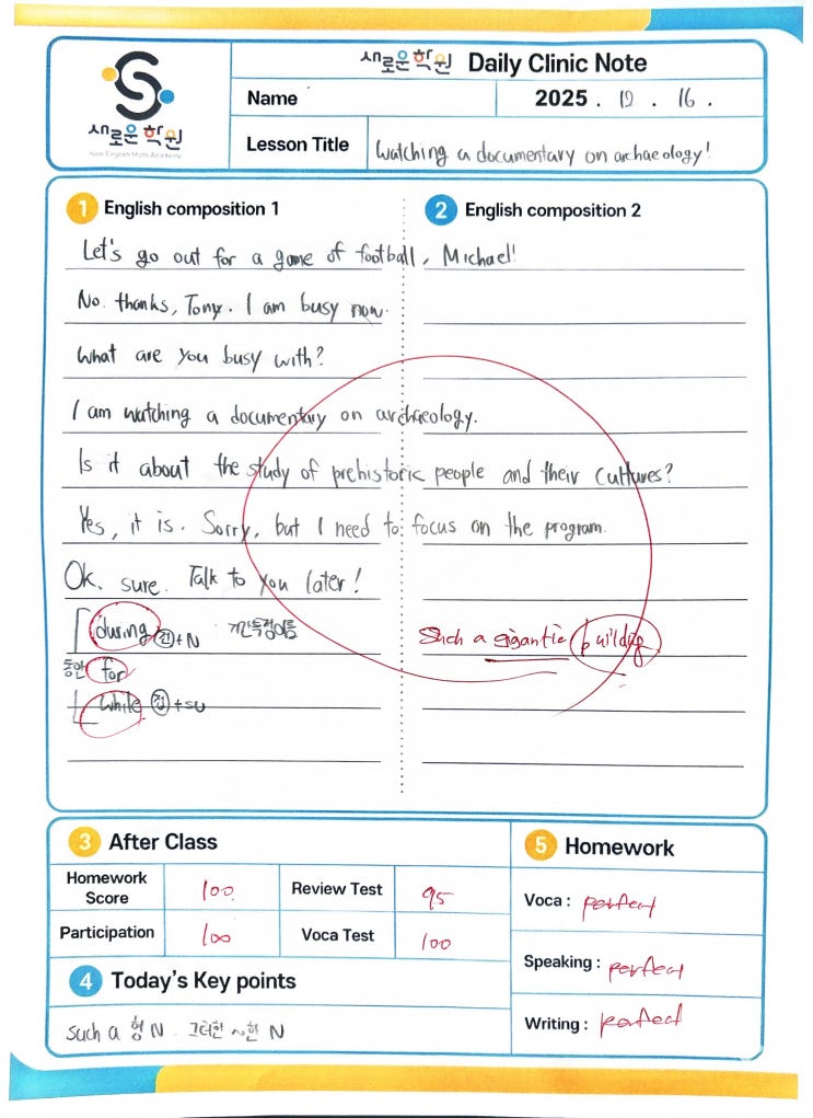 <서초 내곡동 영어학원> 우수 오답노트 영어 2025년 12월 17일