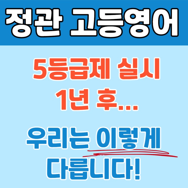 안녕하세요, 정관 중고등 영어교육 전문 EiK English 입니다! 정관고등영어, 5등급제 1년 실시 후 변화! 5등급제가 시행된 지 1년. 이제 두 번째 해를 맞이한 지금, 현장에서 바라본 변화는 다음과 같이 분명합니다. 단순히 등급 비율만 달라진 것이 아니라, 시험의 구조와 준비 방식 자체가 달라졌습니다. 예전의 경험만으로는 더 이상 안정적인 결과를 보장하기 어렵습니다. 지난 1년을 돌아보며 가장 크게 느낀 변화는 다섯 가지입니다. 1. 학기마다 달라지는 시험 패턴 과거에는 학교별로 어느 정도 고정된 출제 경향이 있었습니다. 하지만 최근에는 학기마다 편차가 큽니다. 어떤 학기는 서술형 비중이 높아지고, 또 어떤 학기는 외부지문과....... <img src="https://blogthumb.pstatic.net/MjAyNjAzMDFfMTUg/MDAxNzcyMzY4NTk5NzM0.-PFZqojdGjz6lFOfn_29TJ_zF6wt2ax713HLmxZ1L1og.xC_ucdcDuh0pWCOgriKKjNKI1kQb1BJOfSzEGv8K568g.JPEG/26.3.1J.jpg?type=s3" />