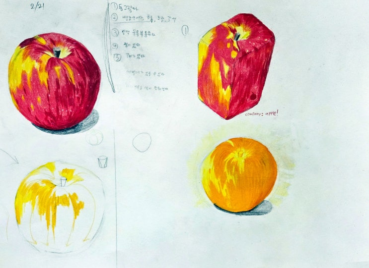 여러분 안녕하세요! '천년의 미소' 입시 미술 학원입니다. 그림을 그릴 때는 가장 기본은 관찰이예요. 아무리 어려운 변형이나 창의적인 표현도 사물에 대한 관찰에서 부터 시작해야 해요. 처음부터 냅다 들어가기 시작하면 본인이 표현하려던 주제가 잘 안 보일 수 있답니다. 그래서 저희 수업에서는 사과를 관찰하고 변형하는 수업을 진행했어요.!! 먼저 우리가 흔히 볼 수 있는 사과 사진을 보여주고 관찰 후 사과이 여러가지 특징을 써봤어요. 그리고 있는 관찰한 특징을 그대로 색연필로 묘사!! 같은 사진을 보고 그렸는데 다 다른 이 느낌. 그리고 나서 관찰 한 특징을 하나 이상을 변형해서 2개 다른 사과를 만들었어요. 이 친....... <img src="https://blogthumb.pstatic.net/MjAyNjAzMDZfMjgx/MDAxNzcyNzc4OTg1ODM5.0p7aDcCwMD7uOZsizV9xW7J2Zhy2N2v-2veA__24Efkg.z4AGeM47yAe5mUf7kFZ8nbsq8j598oGxzskkMoH9t-kg.JPEG/KakaoTalk_20260222_104011751_07.jpg?type=s3" />