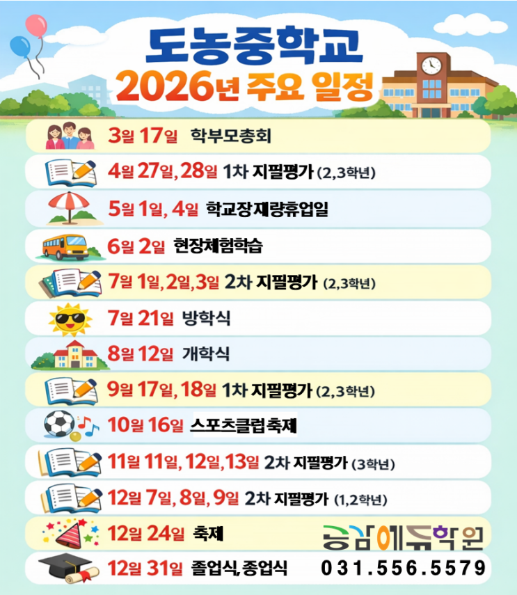 도농중학교 2026년 주요 학사 일정
