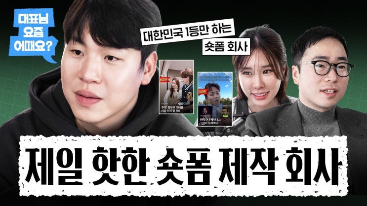 사장님들의 현실 토크쇼 대표님, 요즘 어때요? 사업하는 사람들의 진짜 고민, 매출 · 인력 · 의뢰 · 커리어 사이에서 매일 흔들리는 이야기들. 강남구 대표 X 쥬니가 묻습니다. 대한민국 대표 MCN에서 PD로 활동하며 연예인·프로축구단·기업의 숏폼 콘텐츠를 제작해 온 사람. 틱톡 200만 팔로워 크리에이터 경험을 바탕으로 각 분야 1등 기업들의 콘텐츠를 만드는 숏폼 전문 회사 USLOOK 창업. 전북현대, 유명 병원, 셀럽 콘텐츠까지 숏폼 시장에서 새로운 가능성을 만들어가는 사람. 숏폼 제작으로 월 60편을 만드는 회사 USLOOK 이하준 대표님, 요즘 어때요? 타임라인 00:00 하이라이트 00:23 오프닝 01:09 회사 소개 01:50 창업 계....... <img src="https://blogthumb.pstatic.net/MjAyNjAzMDZfMTgy/MDAxNzcyNzc3NTE3MTM2.0PeGKJ_5wEmE_gb1G7R6mM0WDd8Zr_H3bMaoZ_8pBBsg.Hwo7nCpDtBk3g3aVFhsMkrloc8W-k7lsB3FK4bbuSTQg.JPEG/hq720.jpg?type=s3" />
