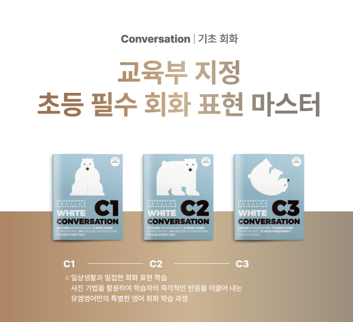 ⏱ White C1 · C2 · C3 (3개월 과정) 언어는 단순히 많이 아는 것보다 얼마나 사용해 보았는지가 더 중요합니다. 또한, 언어는 배운 지식을 “응용”하는 것보다 이미 알고 있는 표현을 여러 상황에서 반복적으로 “사용”해 보는 경험을 통해 자연스럽게 활용 능력이 길러집니다. 이미 알고 있는 표현을 ✔ 변형 없이 ✔ 비슷한 상황에서 ✔ 여러 번 반복해서 말해 보는 것 이 과정을 통해 아이의 언어 사용 경험이 쌓이게 됩니다. 왜냐하면 실제 언어를 사용하는 상황에서는 문법만 생각하며 말할 수 없기 때문입니다. 대화를 할 때는 상황을 이해하고 상대의 말을 듣고 생각을 정리하면서 말해야 합니다. 그래서 아이가 영어를 자연스럽게 활....... <img src="https://blogthumb.pstatic.net/MjAyNjAzMTNfMjYy/MDAxNzczMzkzNTk2MDU4.1ywqCF20ageQZ8vdbel8RvXYnBvKgaXhHPaZHPO_iaog.TKAyPgEbR-AUrhd5F-PPwFq9r5dORVn3e6x3ueIXOcgg.PNG/image.png?type=s3" />
