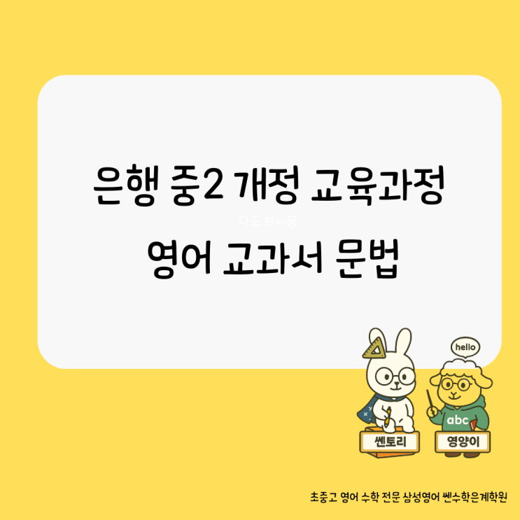 중학교 2학년 영어 문법, 문장의 구조를 이해하는 것이 핵심입니다 안녕하세요. 삼성영어 쎈수학 은계학원의 달님쌤입니다. 중학교 영어 학습에서 2학년 과정은 매우 중요한 전환점이 됩니다. 1학년에서 기본적인 문장 구조와 시제를 익혔다면, 2학년에서는 문장을 확장하고 정교하게 표현하는 문법 구조를 배우게 됩니다. 특히 동아출판 이병민 교과서 기준 중2 과정에서는 문장을 확장하는 문법, 조건을 표현하는 문법, 복합문 구조 등 실제 영어 사용에 필요한 핵심 문법이 등장합니다. 이번 글에서는 중학교 2학년 과정에서 배우는 주요 문법과 이 문법이 영어 학습에서 어떤 역할을 하는지를 소개해 보겠습니다. UNIT 1 to부정사(형용사적 용....... <img src="https://blogthumb.pstatic.net/MjAyNjAzMTNfMTQ1/MDAxNzczMzg2MzgzNDM3.EgozcVqhbfQqTcdfwB8BoKbv4Vktt4SeuZdnhepaYVcg.IbzuXiylcijQBcIlayoesyMLHYr-ox9gyUQE0z4tOR4g.PNG/Yellow_coming_soon_Instagram_post_%286%29.png?type=s3" />