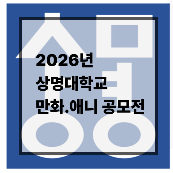 안녕하세요~ 애니위드만화학원입니다. 오늘은 2026년 상명대학교 만화.애니메이션 공모전 소식 전해드립니다. [ 개 최 요 강 ] ■ 주최 : 상명대학교 ■ 주관 : 상명대학교 예술대학 디지털만화영상전공 ■ 협찬 및 후원 : ㈜엠굿(mgood) 미대입시, ㈜신한화구, ㈜미젤로 ■ 후원 : (사)한국만화웹툰학회, (사)한국웹툰산업협회, (사)우리만화연대, (사)웹툰협회, (사)한국카툰협회, (사)한국만화애니메이션학회, (재)한국만화영상진흥원, ㈜스토리위즈 ■ 참가 대상 : 전국 중·고교 재학생 및 검정고시생, 고교 졸업생 및 검정고시 합격생 ■ 접수 기간 : 2026년 3월 19일(목) ~ 5월 1일(금) 오후 5시까지 ■ 접수 방법 - 온라인 접수: ㈜엠굿 홈....... <img src="https://blogthumb.pstatic.net/MjAyNjAzMTlfNzUg/MDAxNzczOTIwNTE2OTM1.reX2qHB050_GBR1B8hjuTPX5zI6cJ9SrJp-fLQ0GLyYg.q469hv2vJKtURWTSJdmfzhkDd--dVuXaxR-DvWqenjgg.JPEG/%C1%A6%B8%F1%C0%BB-%C0%D4%B7%C2%C7%D8%C1%D6%BC%BC%BF%E4_-001_%2831%29.jpg?type=s3" />