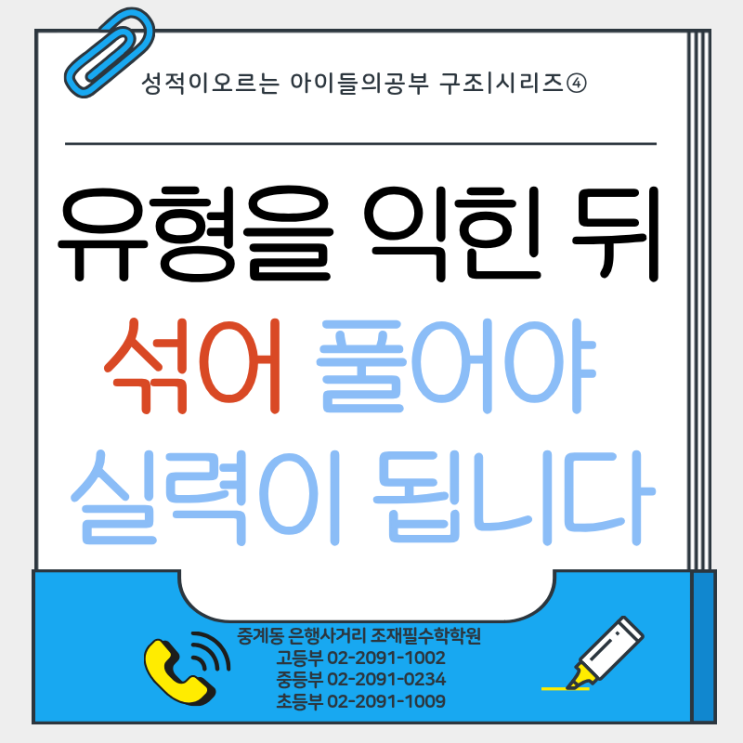 유형을 익힌 뒤, ‘섞어서’ 풀어야 진짜 실력이 됩니다_조재필수학학원
