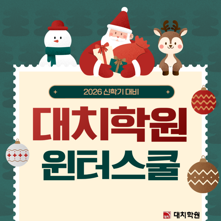 안녕하세요. 대치학원 도안캠퍼스입니다! 겨울방학은 지난 학기를 정리하고 다가오는 신학기를 준비할 수 있는 가장 중요한 시기입니다! 특히 이 시기에 어떤 방식으로 학습하느냐에 따라 새학기 성적의 출발선이 크게 달라질 수 있습니다. 대치학원에서는 2026학년도 신학기 대비를 위한 윈터스쿨을 개강하여, 겨울방학 동안 학생들이 체계적으로 실력을 다질 수 있는 커리큘럼을 제공하고 있습니다! 대치학원 윈터스쿨 대비 필요성 겨울방학은 학습 흐름을 새롭게 정비할 수 있는 1년 중 가장 중요한 골든타임입니다. 학기 중에는 진도와 수행평가, 시험 준비로 인해 부족했던 부분을 돌아보기 어렵지만, 방학은 오롯이 학습의 기초와 방향을 점....... <img src="https://blogthumb.pstatic.net/MjAyNTEyMThfMTg2/MDAxNzY2MDMzNjIzNTgy.iis7lBsHtpY5l7W68cU1fHvkWz95_i1pHehxgPGQ_HUg.G8RfUL1slN3IrfxX56k61S7JeTmpf3sJsui3V-VAC9cg.PNG/%B4%EB%C4%A1%C7%D0%BF%F8_%C0%A9%C5%CD%BD%BA%C4%F0.png?type=s3" />